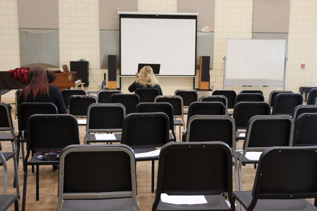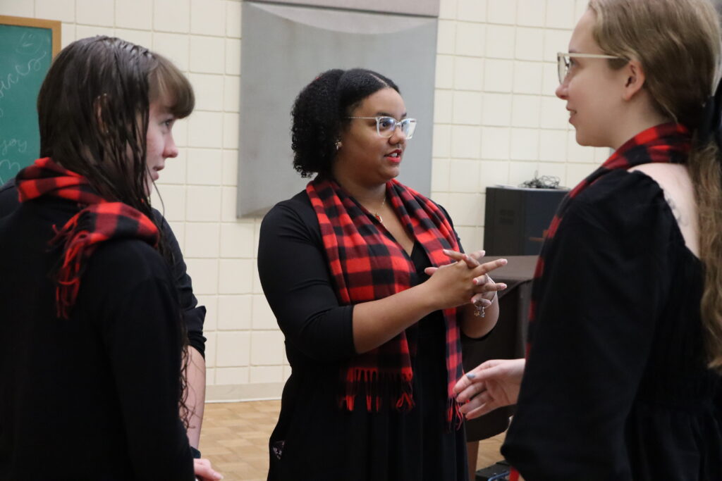 The Chamber Singers and Concert Choir vocal ensembles do not typically rehearse together, so performers got the chance to come together for some songs within this holiday performance.